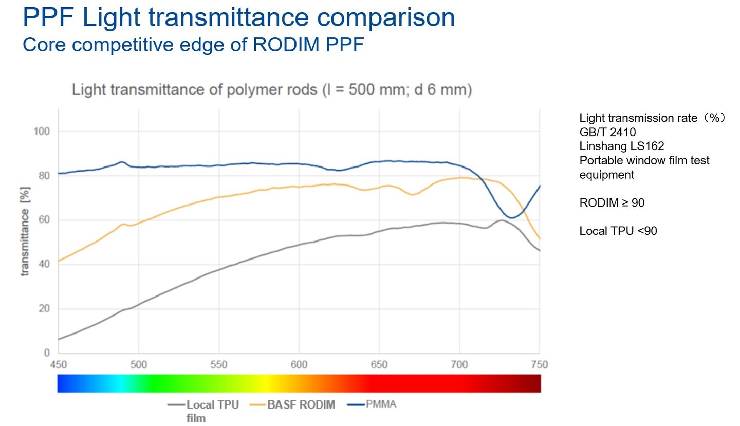 High-quality TPU raw materials are the foundation, and product research and development is the soul of a brand. As the world's major supplier of original automotive refinish paint, BASF has a better understanding of the performance of car paint, and the RODIM® PPF it produces can fit the car paint more perfectly.